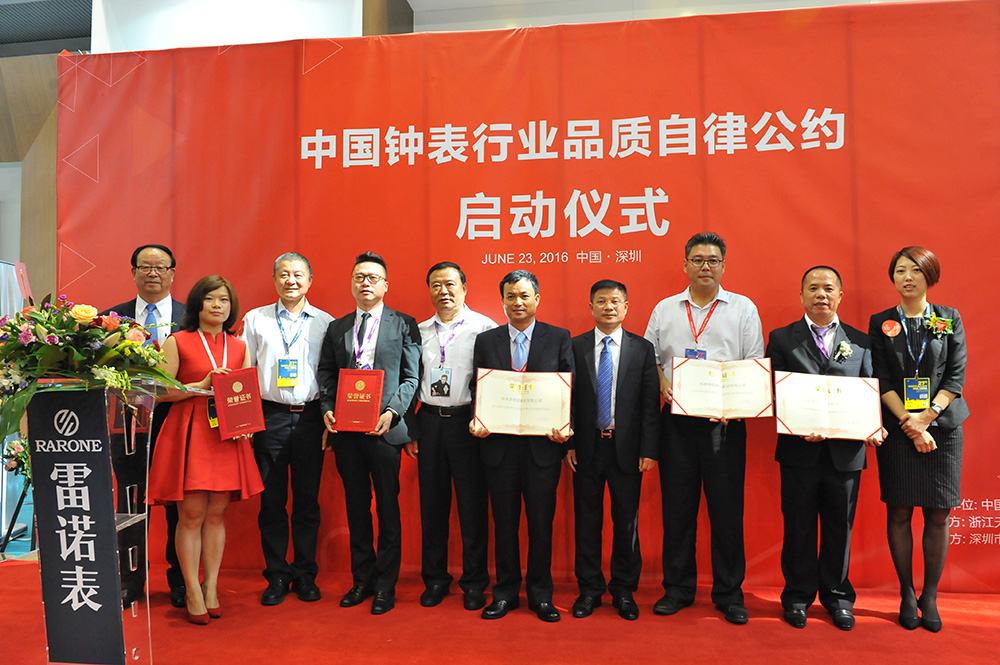 由天貓主辦、雷諾表承辦的《中國鐘表行業品質自律公約》啟動簽約儀式在雷諾表展館內舉行,行業內具有影響力的鐘表企業一同簽約,為促進中國鐘表行業質量做出努力和承諾。